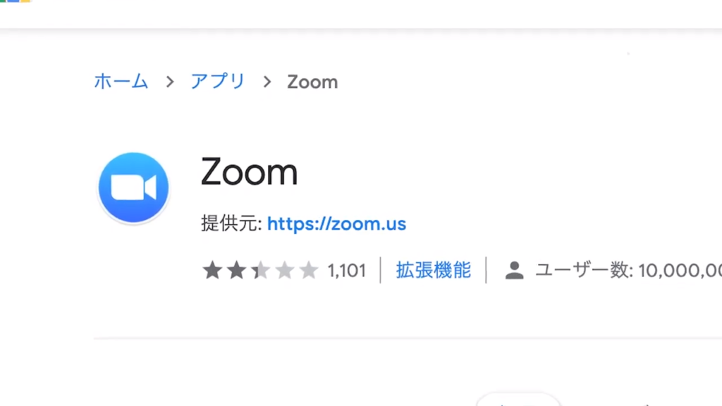 実際に公式が紹介しているChromeウェブストアのzoomを見てみると、