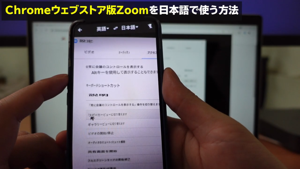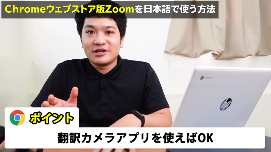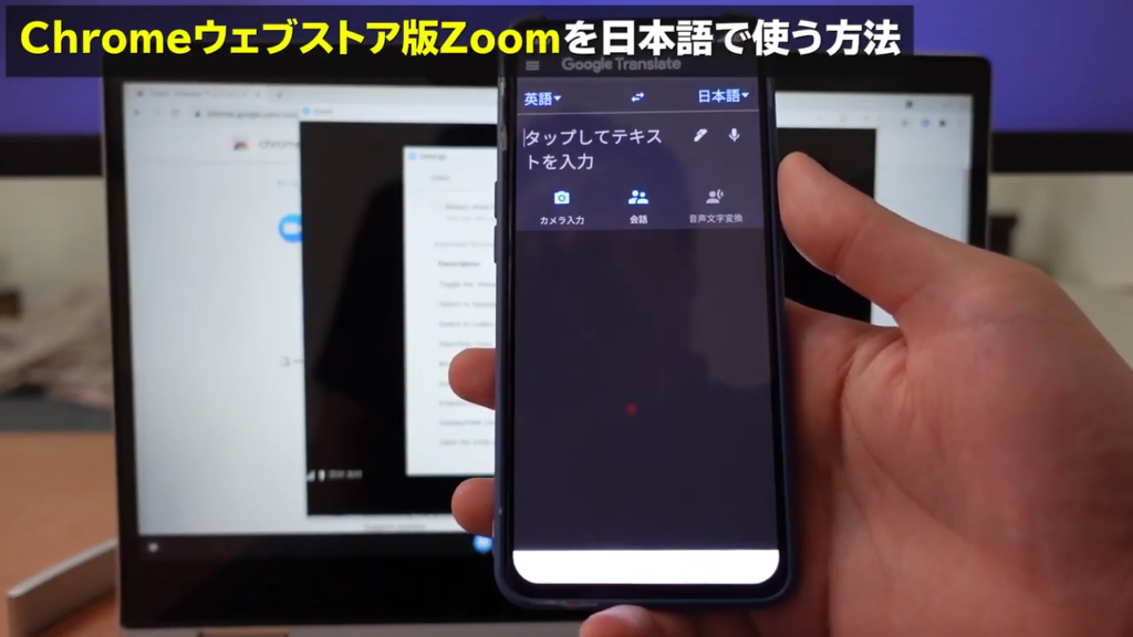 「Chromeウェブストア版zoom」は「翻訳カメラ」と組み合わせることで、日本語で使えます。